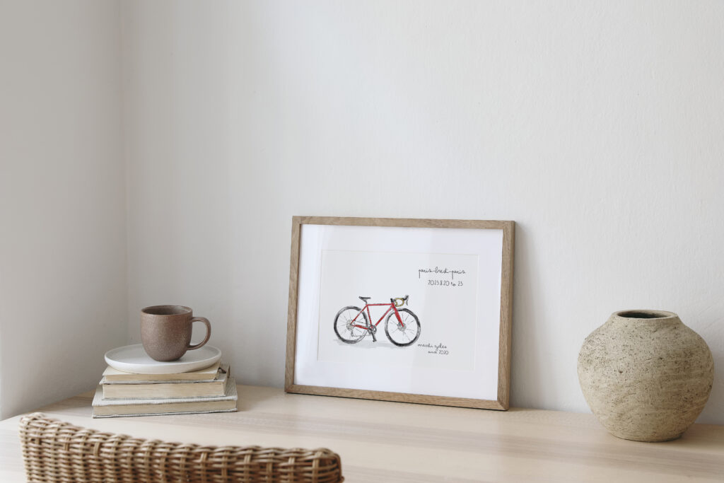 The recipient participated in the Paris-Brest-Paris cycling event, and the illustration was presented as a birthday plate to commemorate completing the race.