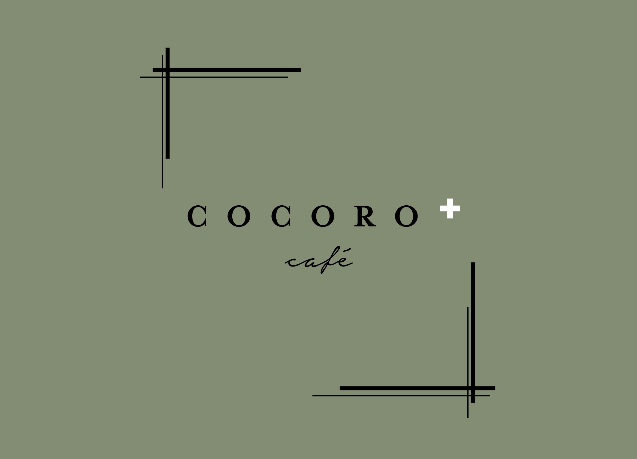 The concept color is moss green, evoking the image of a garden surrounded by trees, and the logotype is in a classical font. The white plus sign (+) and brackets in the logo symbolize “plus,” aligning with the cafe’s concept: “May this be a place that enriches the lives and hearts of our customers.” The owner and staff carefully considered various patterns, and the final logo mark was chosen with great sentiment.