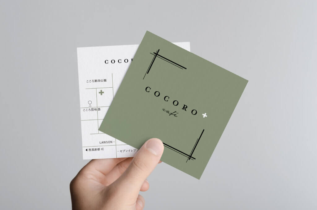 We created the logo branding for Kokoro Plus Cafe, a detached cafe located in a corner of the Nishifu Shinto Kokoro housing complex in Hiroshima.
